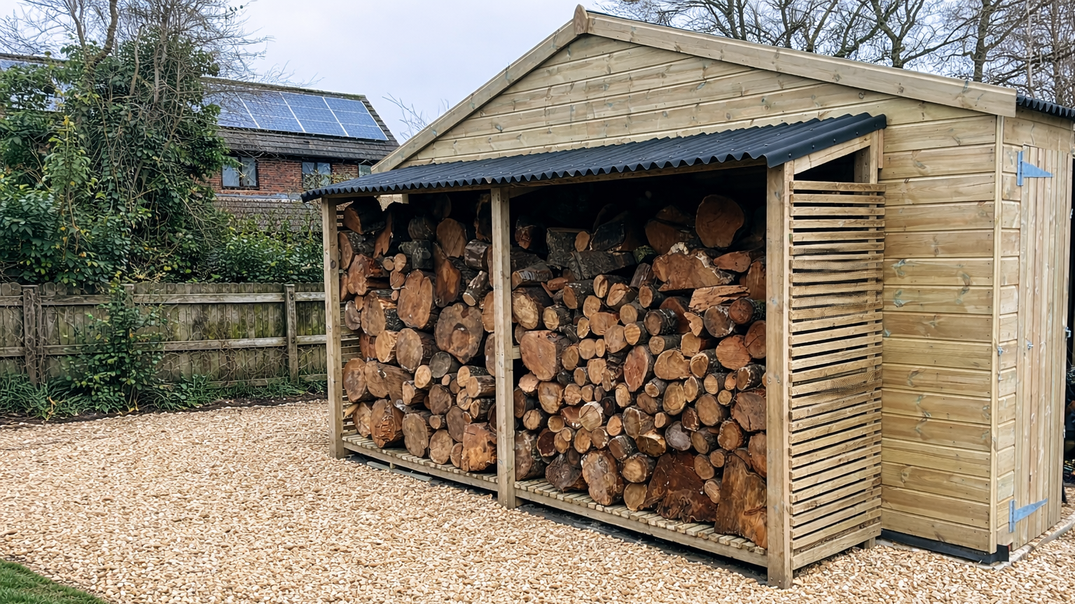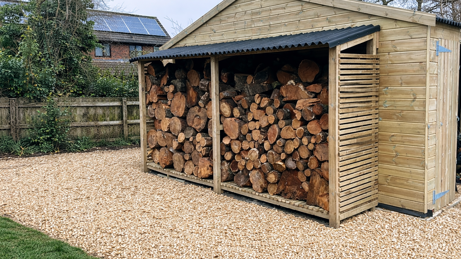 One of our culinary clients had unfortunately lost a cherry tree to disease and really didn’t want it to go to waste, especially when it’s so good for the barbecue. So we built this lovely 180cm x 40cm x 360cm tanalised wooden log store that attached to the back of the wooden garage. It was covered with corrugated black onduline roofing sheets to match the garage roof, and as you can see stored 2.5 CBM of logs.