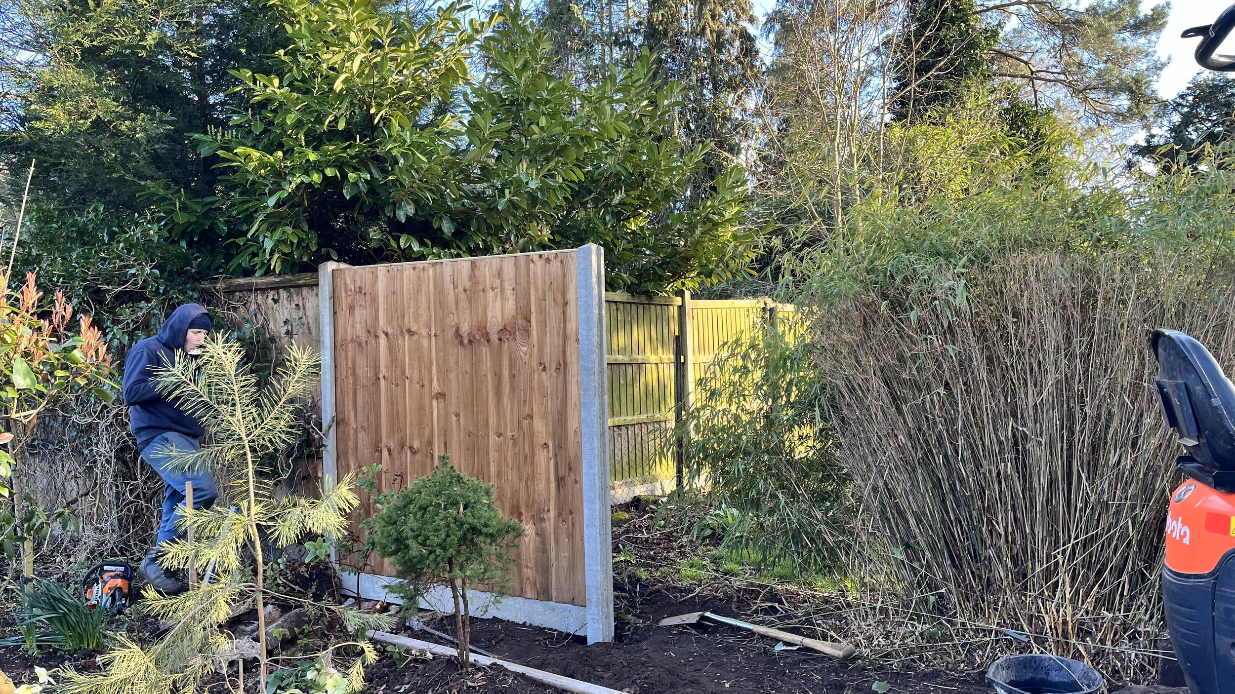 A local client had a boundary which had not only become overgrown, but had slowly pulled the old wire fence down, meaning a total overhaul was necessary. Having cleared the site we used concrete posts and gravel boards to set the fence straight and give the whole end of the garden a tidy up, ready for the summer.