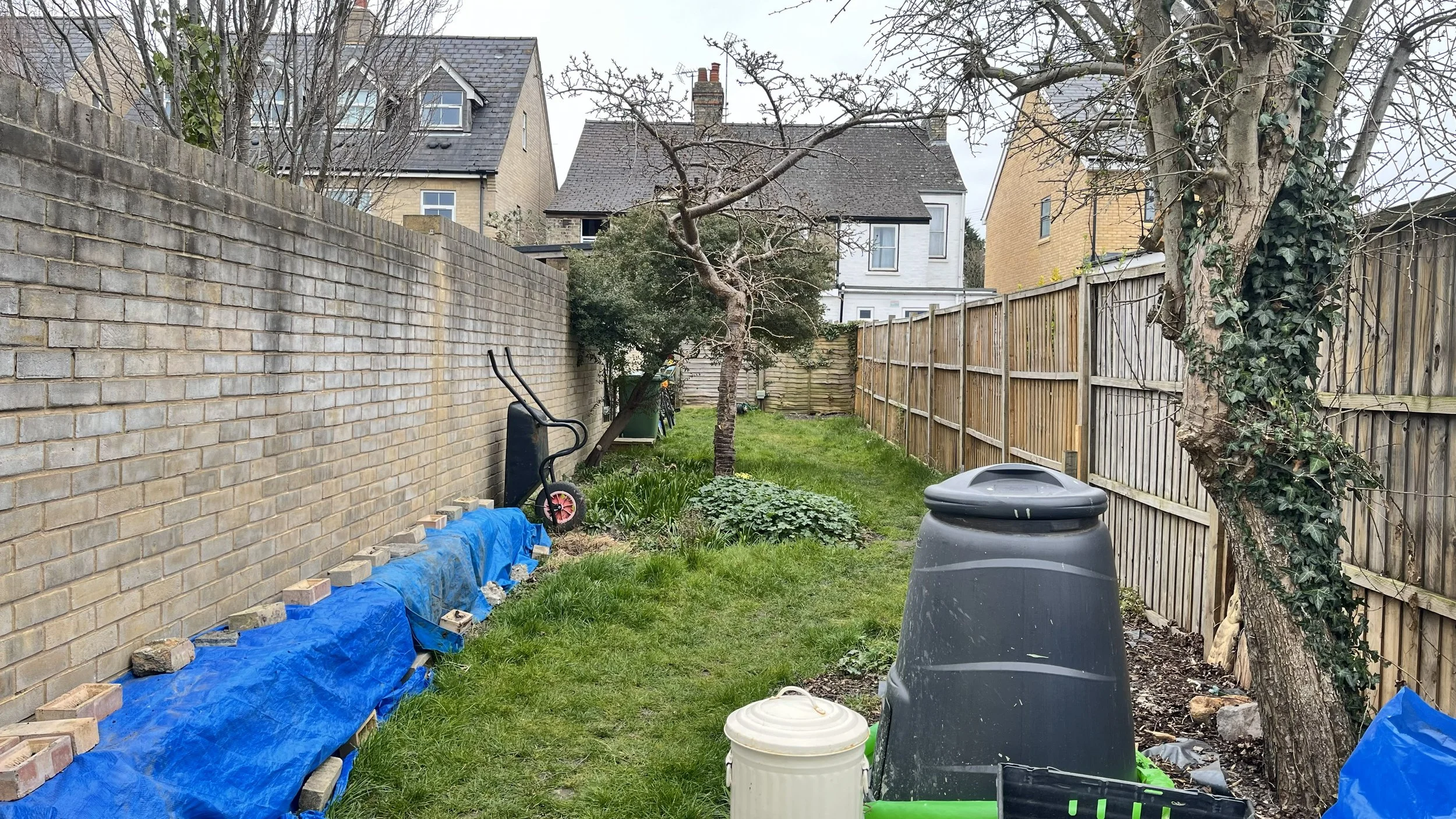 Our client's garden is situated in the glorious city of Cambridge, and is a classic city garden in that it is long and thin, at 30 meters by 5 meters. The garden sits on heavy clay and when they first moved in they managed to wrangle it into shape, but since having a young family, it slowly got on top of them and they felt a full overhaul was needed. The main idea was to create three distinct spaces that would be functional, and easy to maintain, whilst giving the garden a bit of a journey as the client had built a beautiful studio office at the bottom of the garden. So we started from scratch.